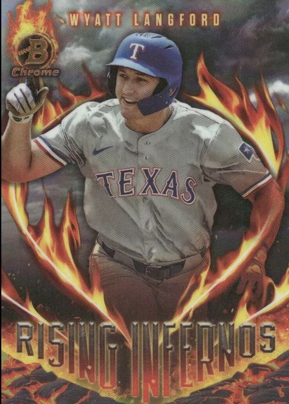 2024 Bowman Chrome Wyatt Langford Rising Infernos Refractor Rookie Rangers
