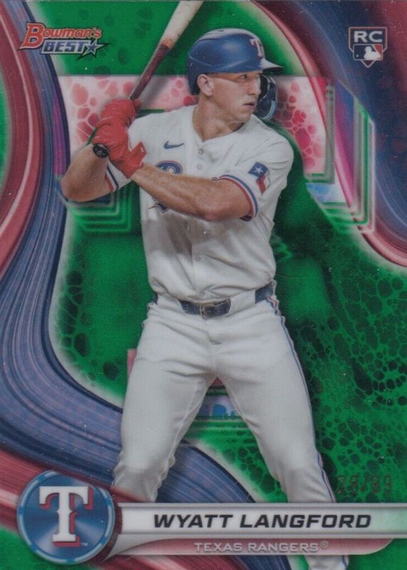 WYATT LANGFORD 2024 BOWMAN'S BEST ROOKIE GREEN REFRACTOR RANGERS RC /99 Q4695