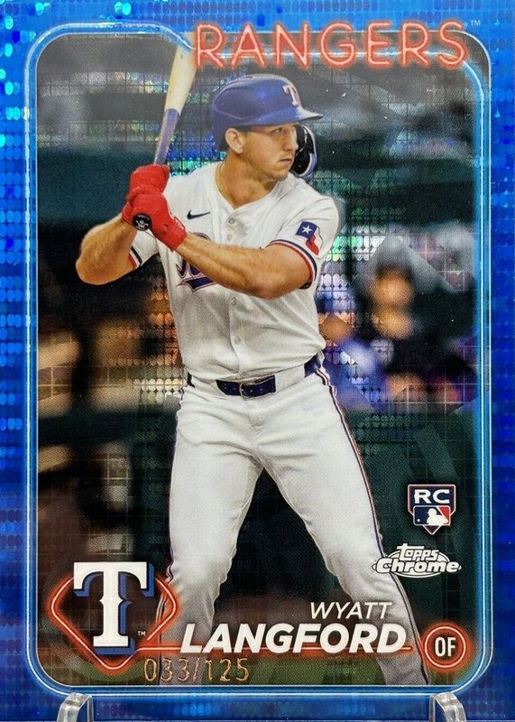 Wyatt Langford 2024 Topps Chrome #122 Blue Sonar RC 75/125 Rangers Color Match
