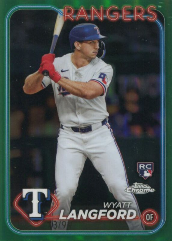 2024 Topps Chrome Green Refractors #122 Wyatt Langford RC ROOKIE 57/99 RANGERS