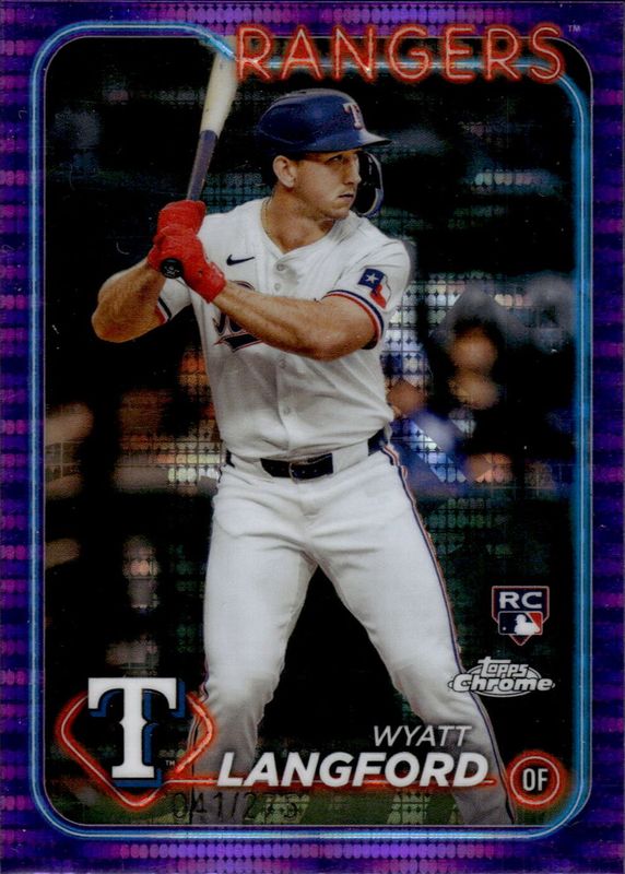 The Wyatt Langford 2024 Topps Chrome #122 Purple Sonar Refractor /275 Rookie card in Raw condition has moved up $2.26 (+14.1%) in the last 30 days and was last sold for $18.26 .