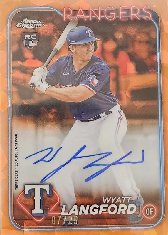 2024 Topps Chrome Sapphire Wyatt Langford Orange RC Auto 5/25 - Rangers