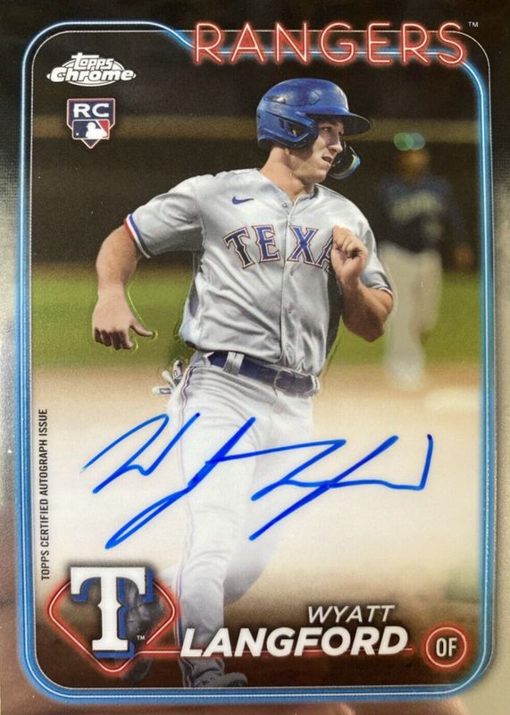 Wyatt Langford RC Auto 2024 Topps Chrome Update On-Card Rookie Autograph Rangers
