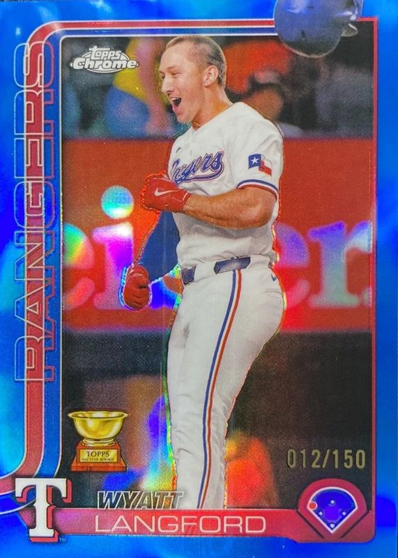 The Wyatt Langford 2025 Topps Chrome #68 Blue Refractor /150 card in Raw condition has moved down -$0.49 (-6.1%) in the last 30 days and was last sold for $7.50 .