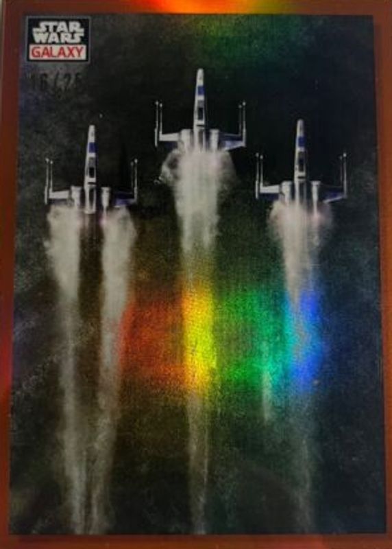 This card is 1 of 11 X-Wings' card variations in the 2023 Topps Chrome Star Wars Galaxy set being tracked by Sports Card Investor, including Base, Refractor, Aqua Refractor /199, Atomic Refractor /150, and Wave Refractor /99.