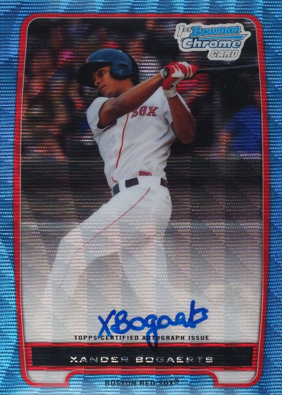 Best Prices Available For Sale of Xander Bogaerts 2012 Bowman #BCP105 Chrome Prospect Auto - Blue Wave Refractor /50 (1st)
