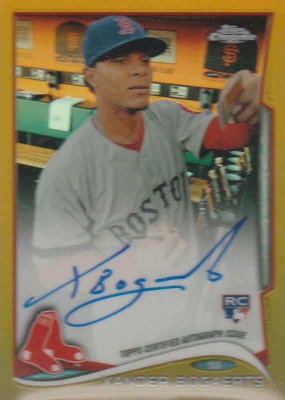 Best Prices Available For Sale of Xander Bogaerts 2014 Topps Chrome #25 Rookie Auto - Gold Refractor /50
