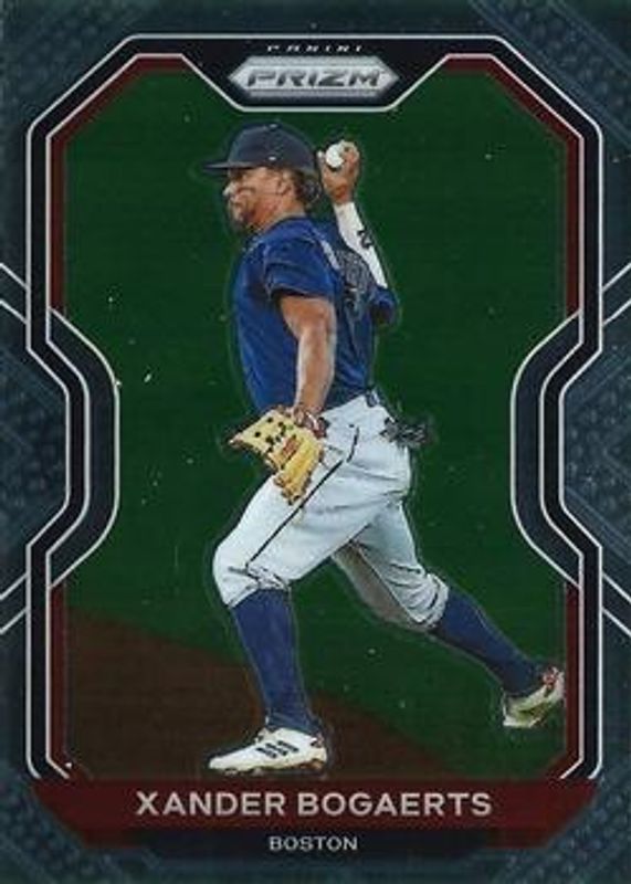 The Xander Bogaerts 2021 Prizm #215 Base card is 1 of 48 Xander Bogaerts' card variations in the 2021 Prizm set being tracked by Sports Card Investor, including Blue, Blue Velocity, Carolina Blue, Cosmic Haze, and Giraffe.