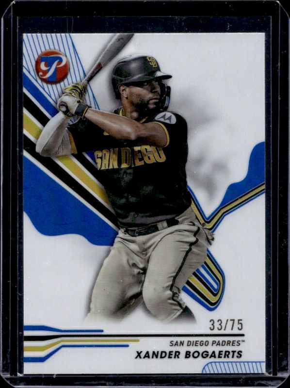 The Xander Bogaerts 2024 Topps Pristine #173 Blue Refractor /75 card is 1 of 18 Xander Bogaerts' card variations in the 2024 Topps Pristine set being tracked by Sports Card Investor, including Base, Pristine Refractor, Refractor, Green Refractor /150, and Pristine Purple Refractor /99.