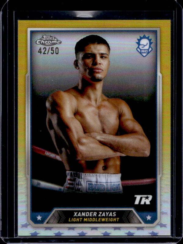 The Xander Zayas 2024 Topps Chrome #20 Gold Refractor /50 Rookie card in Raw condition has not changed in price in the last 30 days and was last sold for $50.00 .