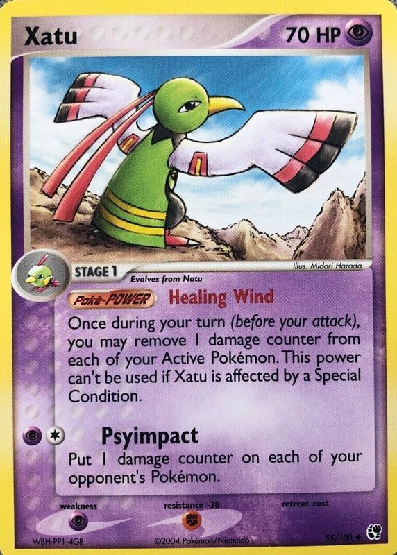 The Xatu 2003 EX: Sandstorm #055/100 Base card in Raw TCG (Near Mint) condition has moved up $1.48 (+98.7%) in the last 30 days and was last sold for $2.98 .