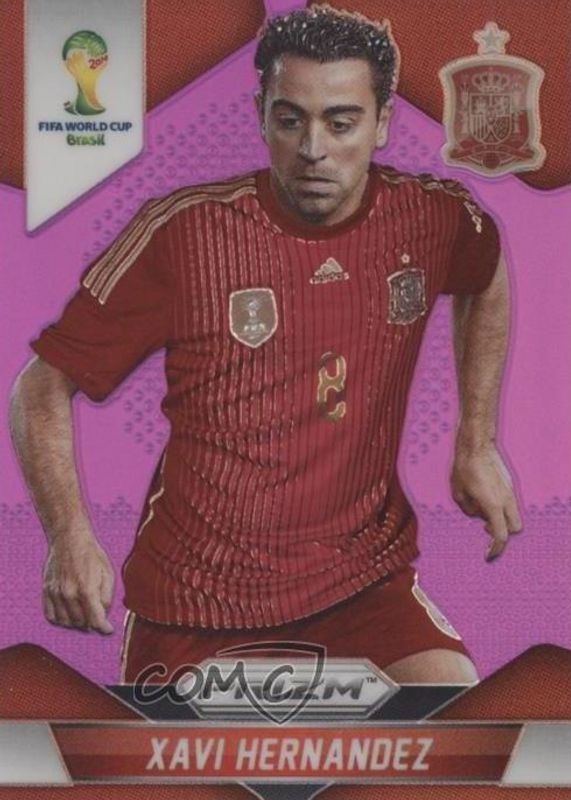 This card is 1 of 13 Xavi Hernandez's card variations in the 2014 Prizm World Cup set being tracked by Sports Card Investor, including Base, Blue & Red Wave, Red White Blue Power Plaid, Silver, and Yellow & Red Pulsar.