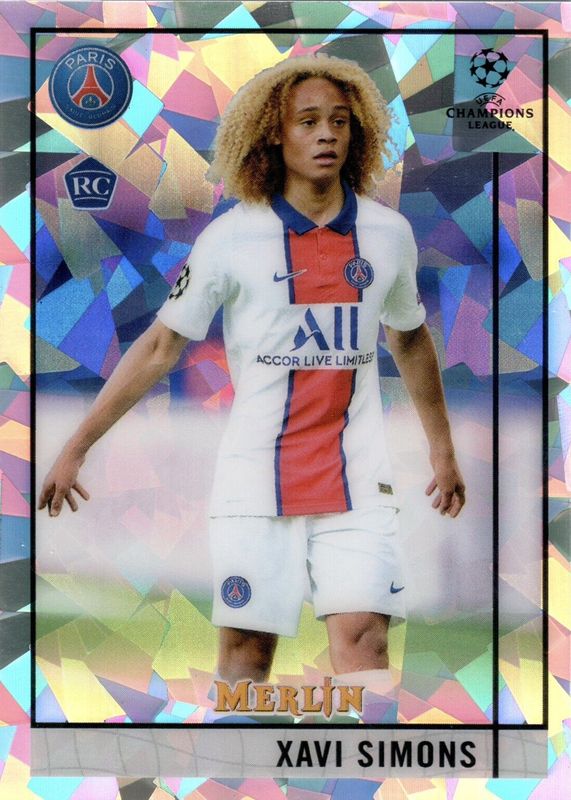 2020-21 Topps Merlin Chrome UCL Xavi Simons Atomic Rookie Refractor RC /250