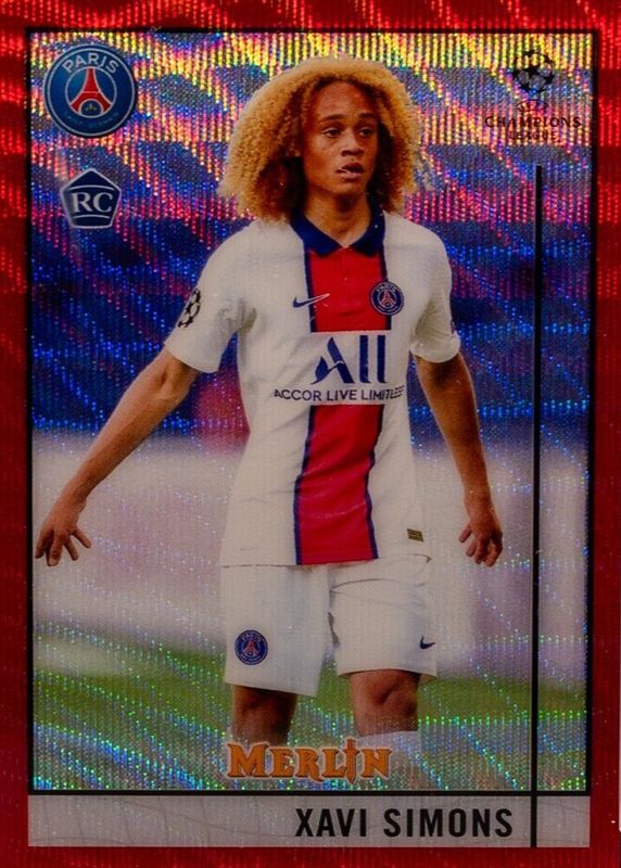 Xavi Simons 2020 Topps Merlin Chrome UEFA Champions League #87 Red Wave Refractor /5 Rookie RAW Price Guide