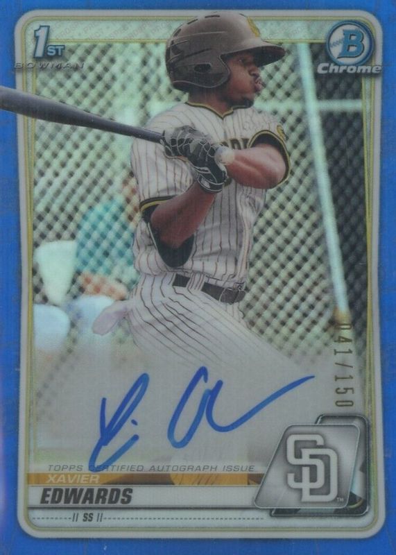 2020 Bowman Chrome 1st Xavier Edwards Blue Refractor Rookie Auto #/150 Padres RC