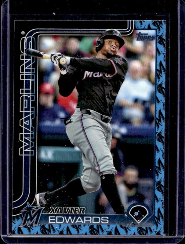The Xavier Edwards 2025 Topps #258 Team Color card is 1 of 62 Xavier Edwards' card variations in the 2025 Topps set being tracked by Sports Card Investor, including Base, Aqua Holo Foil, Diamante Foil, Holo Foil, and Pink Diamante Foil.