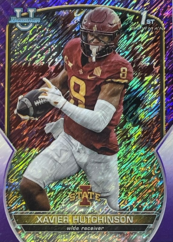 2022 Bowman University Chrome #32 Xavier Hutchinson Purple Shimmer Refractor