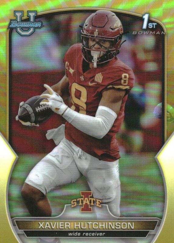 This card is 1 of 37 Xavier Hutchinson's card variations in the 2022 Bowman Chrome University set being tracked by Sports Card Investor, including Prospects (1st), Prospects - Pink Refractor (1st), Prospects - Purple Shimmer Refractor (1st), Prospects - Refractor (1st), and Prospects - Purple Mini-Diamond Refractor /399 (1st).