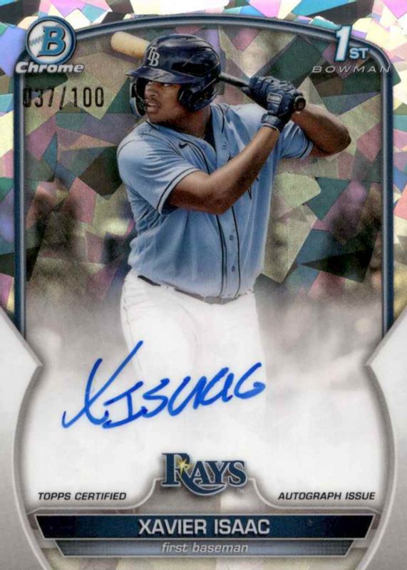 2023 Bowman 1st XAVIER ISAAC Chrome Prospect Atomic Refractor Auto /100 - Rays