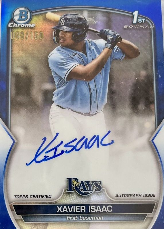 XAVIER ISAAC 2023 BOWMAN CHROME 1ST BLUE REFRACTOR AUTO /150