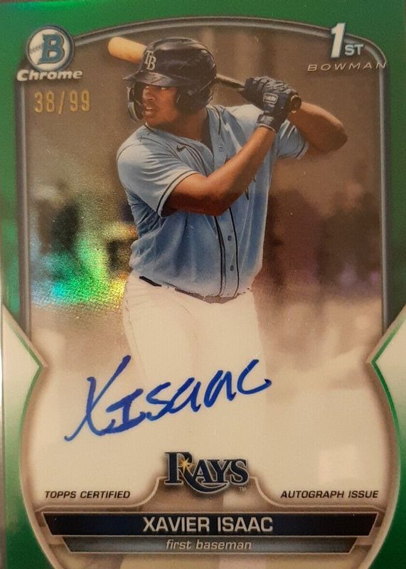 Xavier Isaac 2023 Bowman #CPA-XI Chrome Prospect Auto - Green Refractor /99 (1st) RAW Price Guide