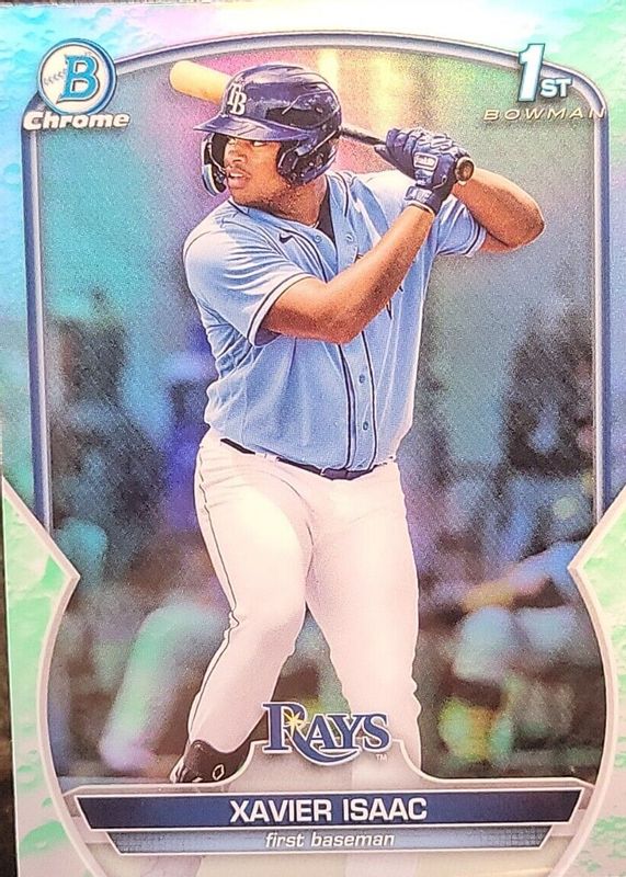 The Xavier Isaac 2023 Bowman #BCP-145 Chrome Prospects - Lunar Glow Refractor (1st) card in Raw condition has moved up $2.00 (+202%) in the last 30 days and was last sold for $2.99 .