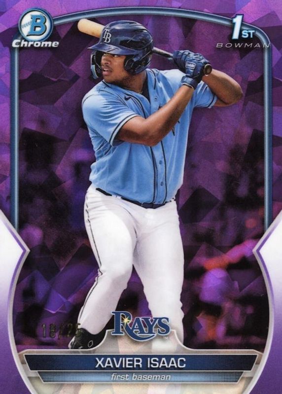 2023 Bowman Chrome Sapphire Purple Refractor Xavier Isaac 1st Rookie 18/25 RAYS
