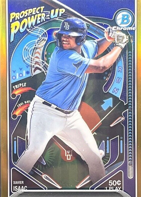 2024 Bowman Xavier Isaac Prospect Power Up Gold Refractor /50 Tampa Bay Rays