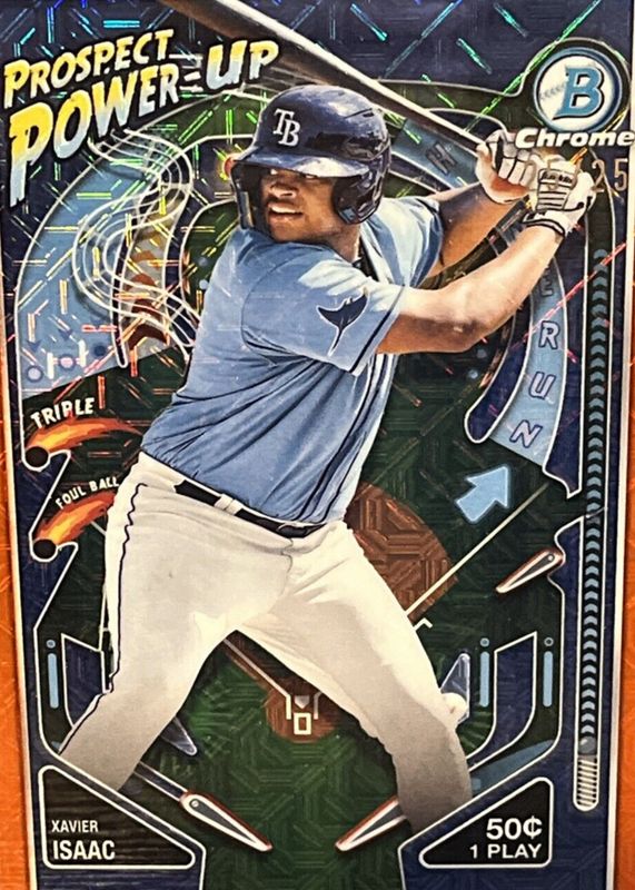 The Xavier Isaac 2024 Bowman #PP-15 Prospect Power-Up - Orange Refractor /25 card in Raw condition has not changed in price in the last 30 days and was last sold for $3.82 .