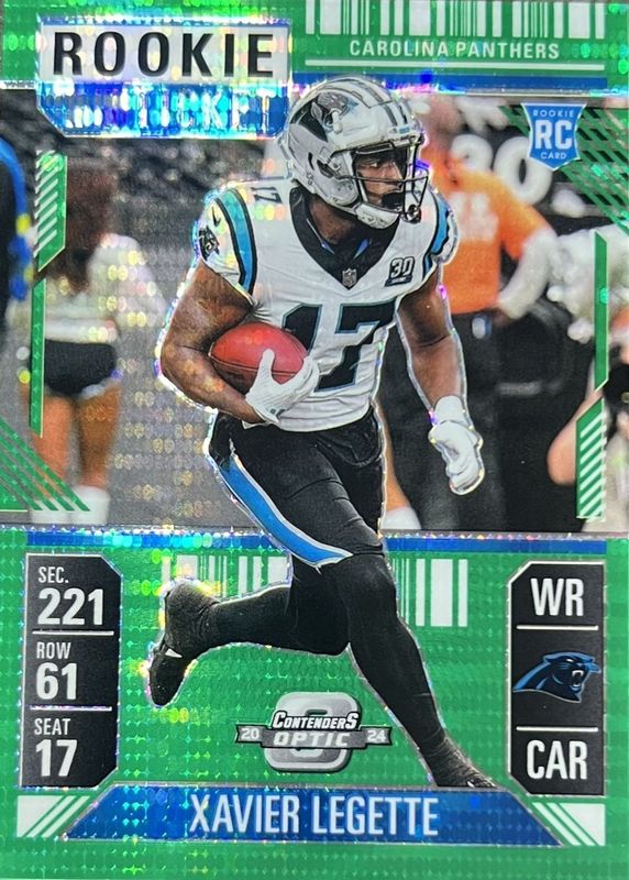 Xavier Legette 2024 Contenders Optic #99 Green Pulsar /49 Rookie RAW Price Guide