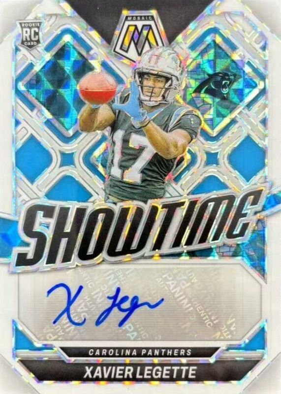 The Xavier Legette 2024 Mosaic #SS-XLE Showtime Signatures Rookie card in Raw condition has not changed in price in the last 30 days and was last sold for $12.95 .