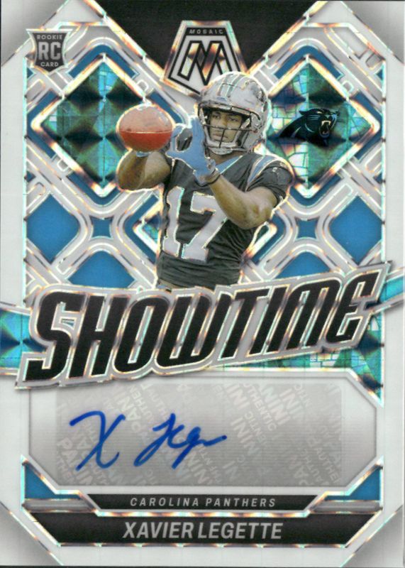 The Xavier Legette 2024 Mosaic #SS-XLE Showtime Signatures - White /25 Rookie card in Raw condition has not changed in price in the last 30 days and was last sold for $35.00 .
