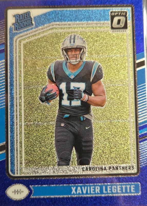 The Xavier Legette 2024 Optic #299 Blue Glitter /(SSP) Rookie card in Raw condition has moved up $5.45 (+214%) in the last 30 days and was last sold for $8.00 .