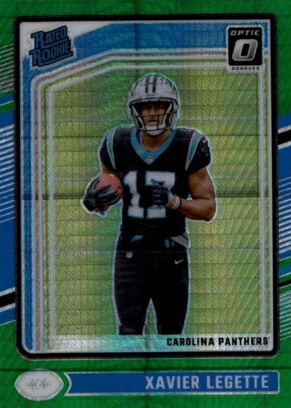 The Xavier Legette 2024 Optic #299 Green Hyper Rookie card in Raw condition has not changed in price in the last 30 days and was last sold for $11.57 .