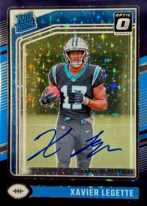The Xavier Legette 2024 Optic #299 Rated Rookie Autographs - Purple Stars /42 card in Raw condition has moved down -$8.50 (-51.5%) in the last 30 days and was last sold for $8.00 .