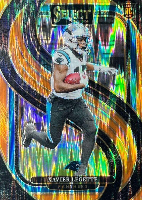 This card is 1 of 67 Xavier Legette's card variations in the 2024 Select set being tracked by Sports Card Investor, including Premier Level, Premier Level Black & Blue Shock, Premier Level Black & Gold Shock, Premier Level Black & Green Shock, and Premier Level Black & Orange Shock.