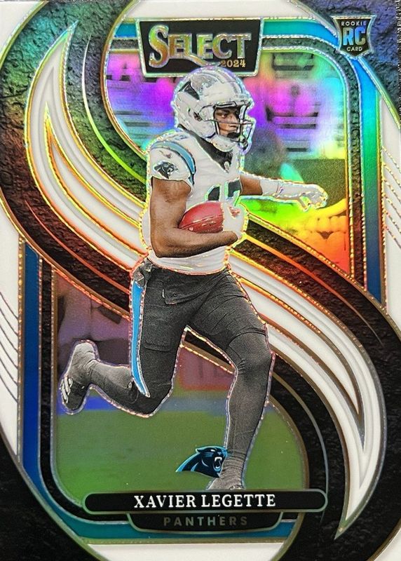 This card is 1 of 67 Xavier Legette's card variations in the 2024 Select set being tracked by Sports Card Investor, including Premier Level, Premier Level Black & Blue Shock, Premier Level Black & Gold Shock, Premier Level Black & Green Shock, and Premier Level Black & Orange Shock.