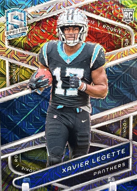 This card is 1 of 19 Xavier Legette's card variations in the 2024 Spectra set being tracked by Sports Card Investor, including Base, Silver, Celestial /99, Hyper /75, and Interstellar /60.