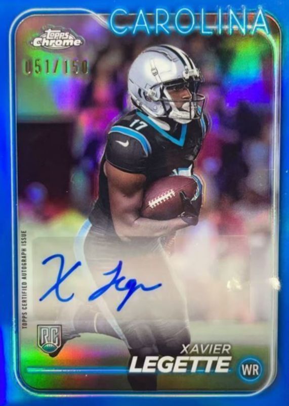 Best Prices Available For Sale of Xavier Legette 2024 Topps Chrome #RA-XLE Rookie Auto - Blue Refractor /150
