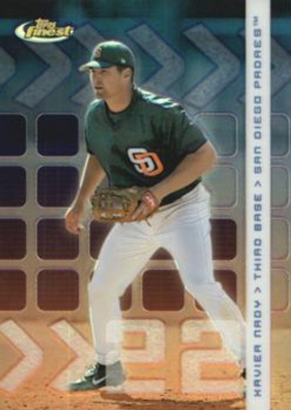The Xavier Nady 2002 Topps Finest #100 Refractor /499 card is 1 of 3 Xavier Nady's card variations in the 2002 Topps Finest set being tracked by Sports Card Investor, including Base, and X-Fractor /299.