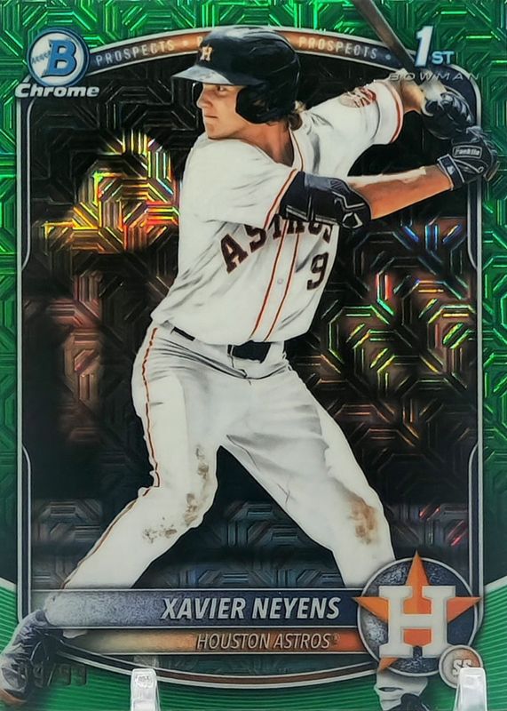 XAVIER NEYENS 2025 BOWMAN DRAFT CHROME 1ST GREEN MOJO 9/99 Jersey Match Astros