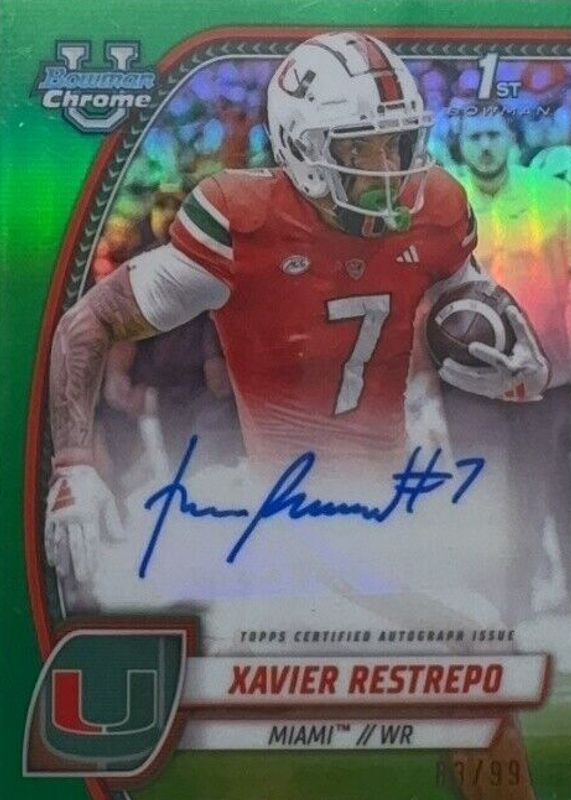 2024 Bowman U Chrome Xavier Restrepo Green Auto #/99 RC Auto Miami