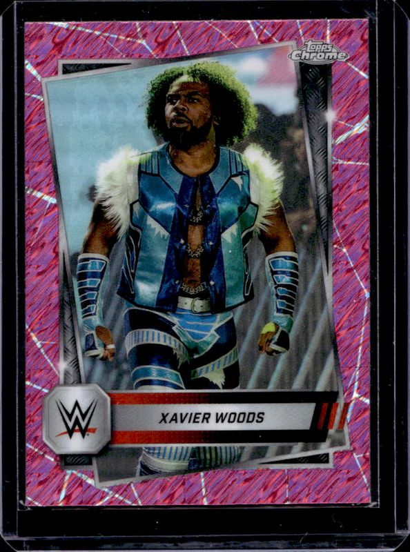 The Xavier Woods 2025 Topps Chrome WWE #193 Pink Shimmer Refractor card is 1 of 36 Xavier Woods' card variations in the 2025 Topps Chrome WWE set being tracked by Sports Card Investor, including Base, Black & Gold Refractor, Geometric Refractor, Neon Green & Black Refractor, and Prism Refractor.
