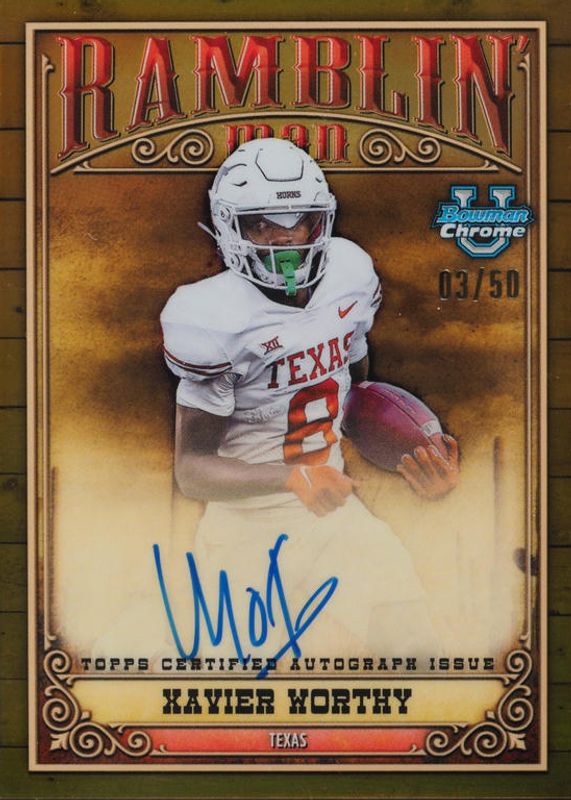 Xavier Worthy 2023 Bowman Chrome University #RMA-XW Ramblin' Man Autographs - Gold Refractor /50 RAW Price Guide