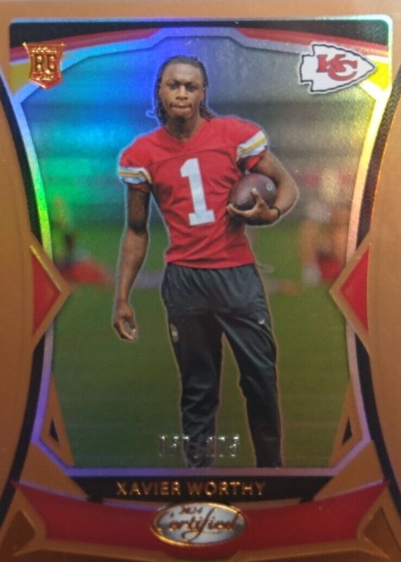 The Xavier Worthy 2024 Certified #120 Mirror Bronze /275 Rookie card in Raw condition has not changed in price in the last 30 days and was last sold for $5.00 .