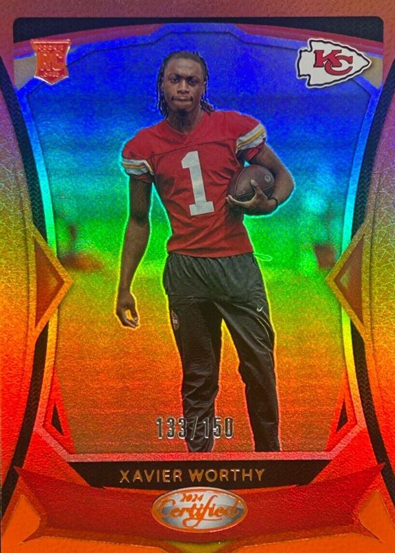 XAVIER WORTHY 2024 Panini Certified FB #120 ORANGE #030/150 RC CARD KC CHIEFS