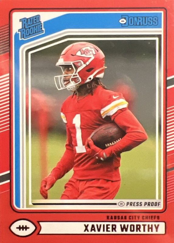 2024 DONRUSS FOOTBALL XAVIER WORTHY RATED ROOKIE RED PRESS PROOF #398 CHIEFS RC