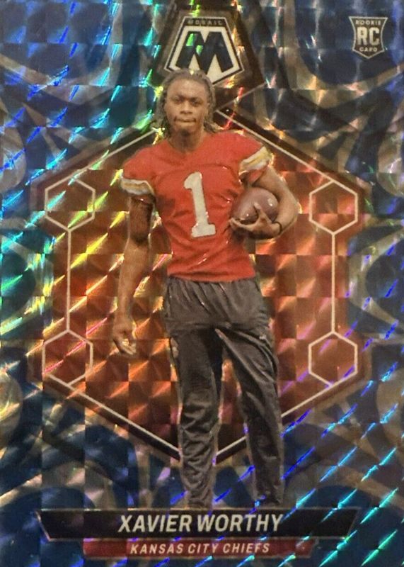 The Xavier Worthy 2024 Mosaic #328 Genesis /(SSP) Rookie card in Raw condition has not changed in price in the last 30 days and was last sold for $70.01 .