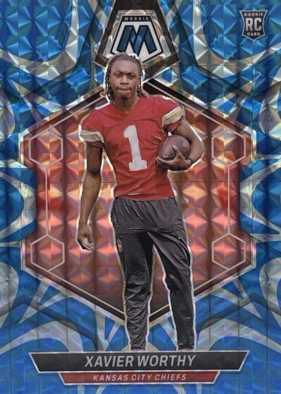 2024 Mosaic Xavier Worthy Blue Reactive Parallel RC #328 Kansas City Chiefs