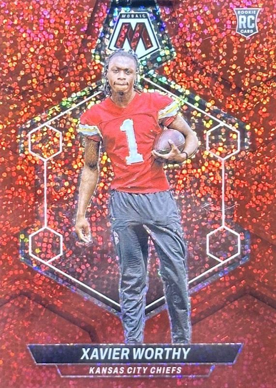 The Xavier Worthy 2024 Mosaic #328 Red Sparkle /(SSP) Rookie card in Raw condition has moved up $10.24 (+240%) in the last 30 days and was last sold for $14.50 .